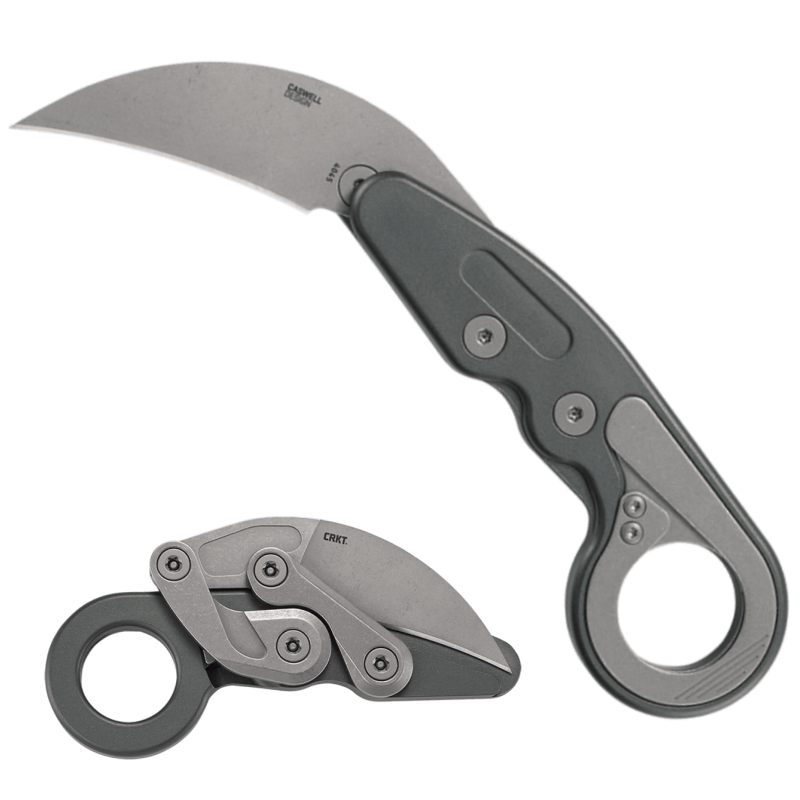 En unik karambit-fällkniv som snabbt och lätt öppnas med tummen.